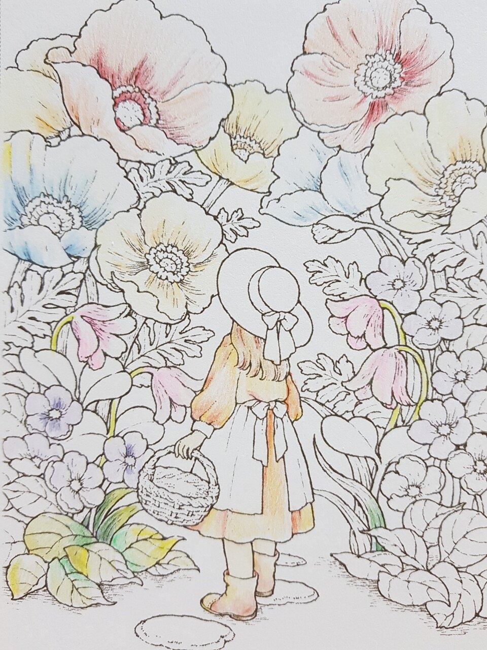 한 장 더 넘겨보니~ 이번에는 꽃밭속의 귀여운 소녀가 기다리고 있었습니다.