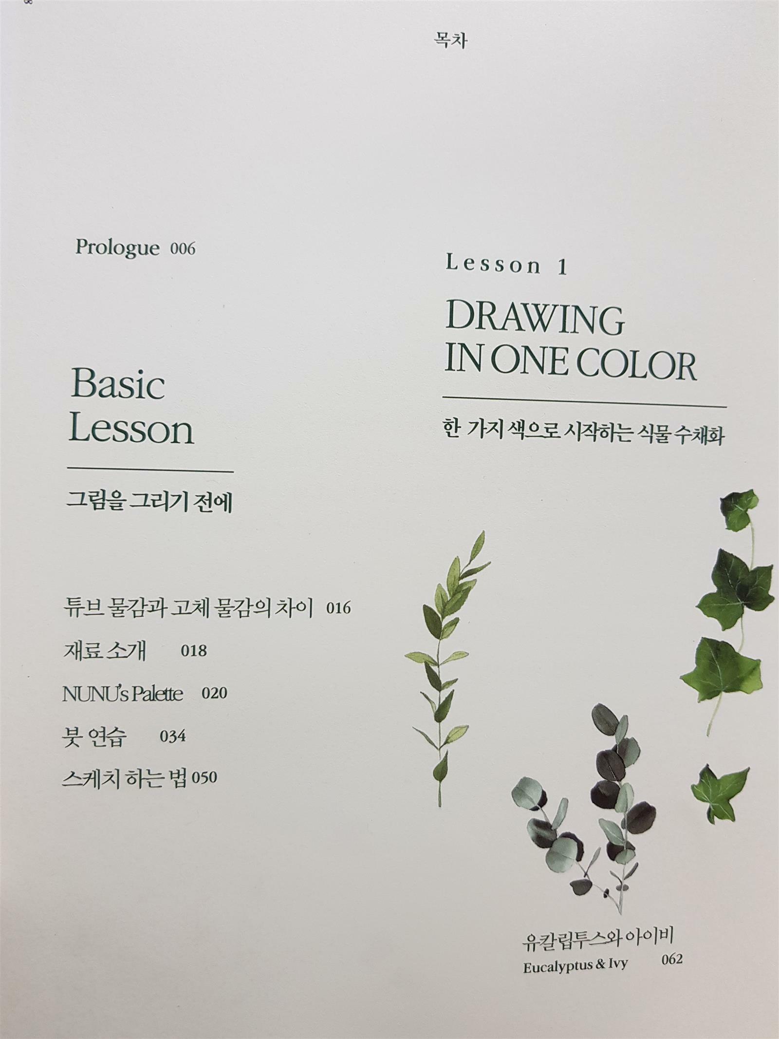 한가지 색으로 시작하는 식물수채화! 라는 제목에서 알 수 있듯