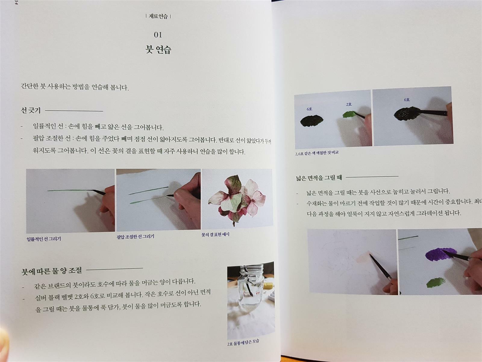 붓연습, 농담조절, 조색연습, 그라데이션 연습, 식물표현을 위한 기본방식을