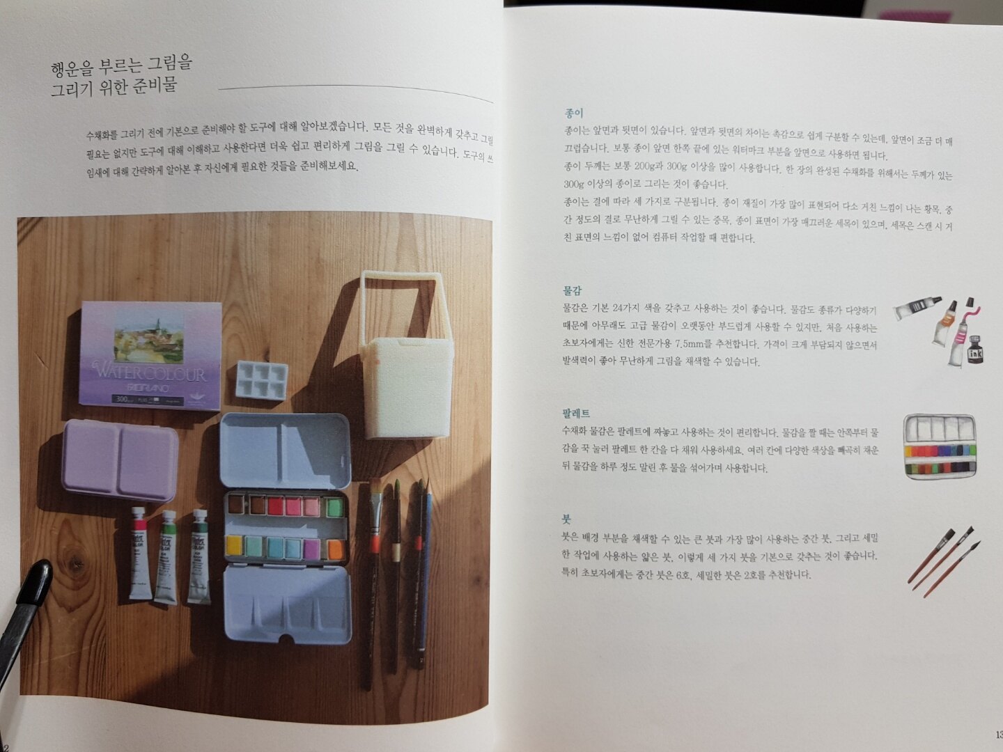 행운을 부르는 그림을 그리기 위한 준비물도 이렇게 상세히 안내되어 있습니다.