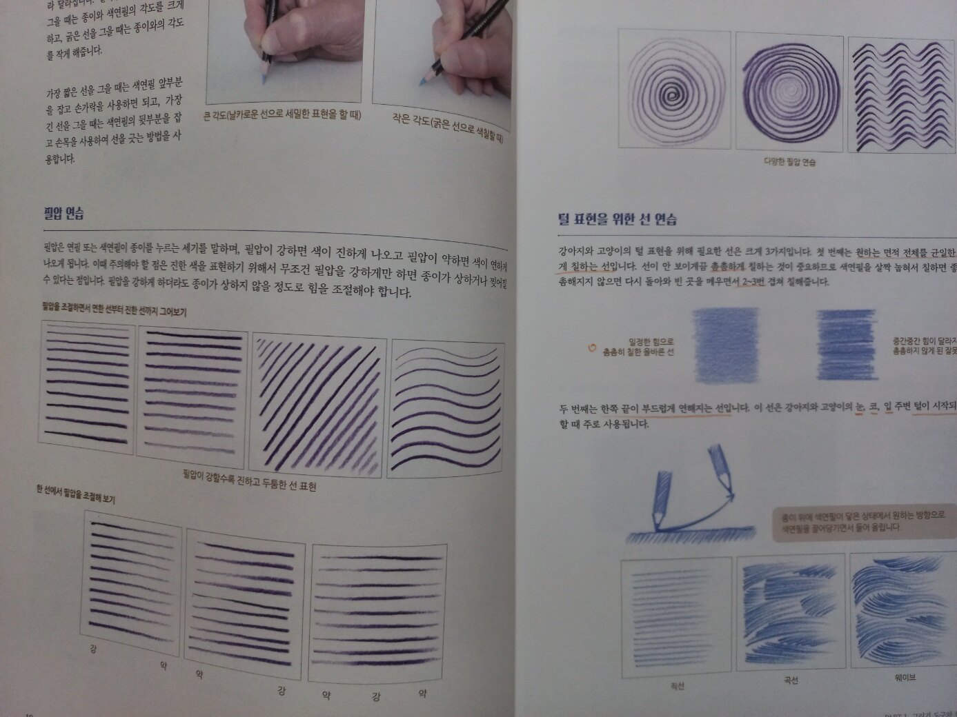 색연필을 잡는 방법에 대한 안내부터 털표현을 위한 다양한 선연습과 블렌딩 기법까지 꼼꼼하고 친절하게 안내합니다.