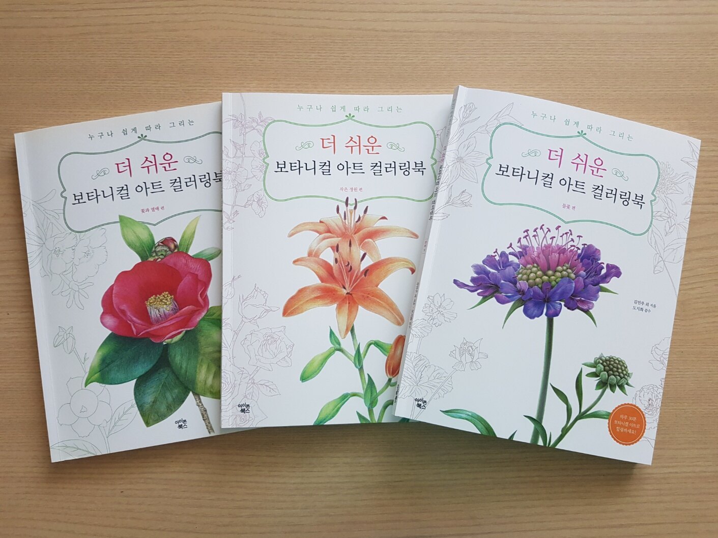 더 쉬운 보타니컬 아트 컬러링북은 세 번째 출간되는 유명시리즈 도서입니다. 꽃과 열매, 작은 정원, 들꽃 편이렇게 세 권이 출간되었어요.