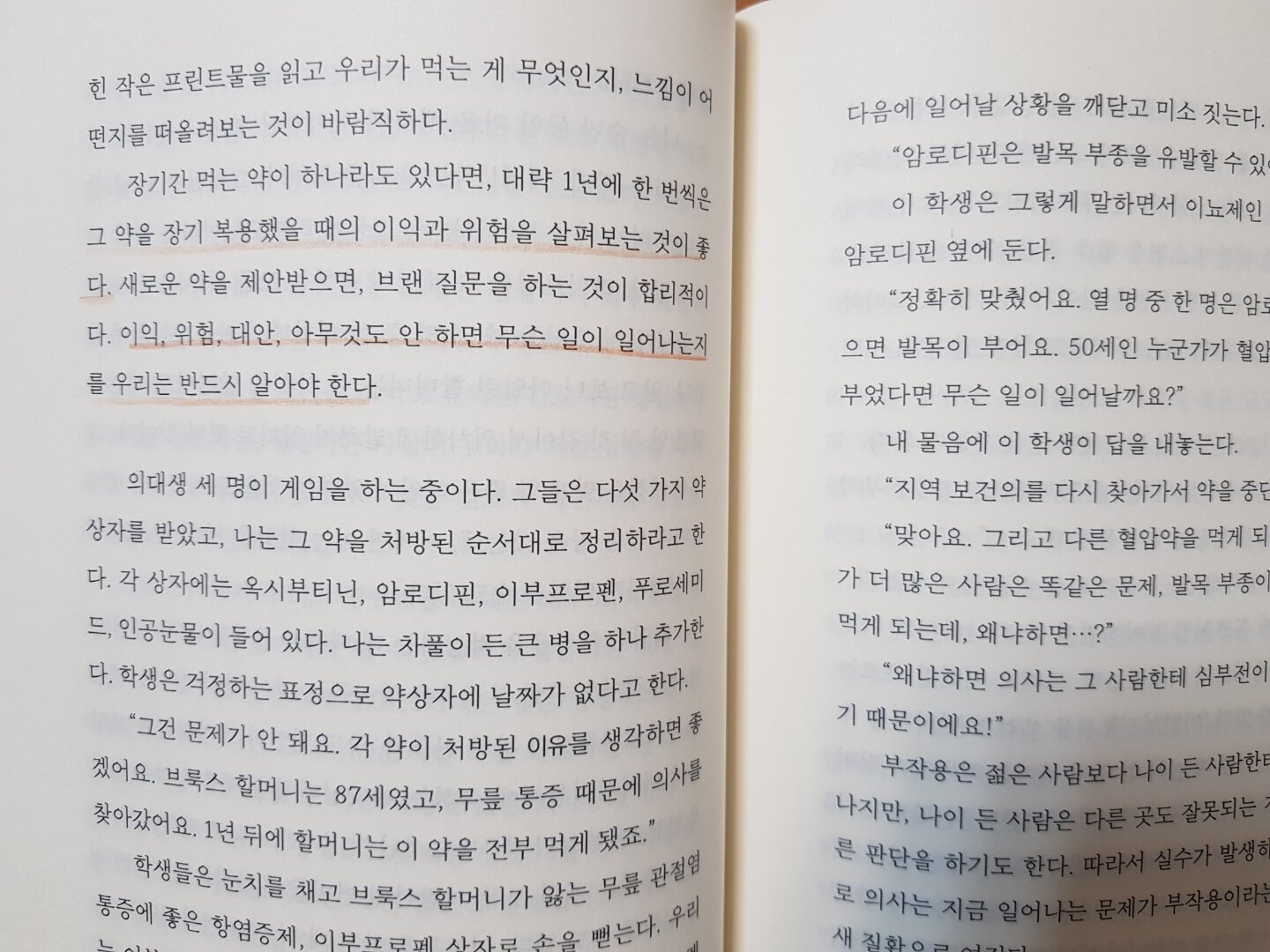 본인과 가족 모두 치매를 의심하고 있었지만, 그 누구도 입밖으로 꺼내지 않고 있었던 가족들..  나였더라면 어떻게 대처했을까.... 책을 읽어가며 만나게되는 여러 환자와 가족들의 사례를 보면서 나였더라면, 우리 부모님이셨더라면....  끊임없이 고민하고 생각했던 시간의 연속이었다.