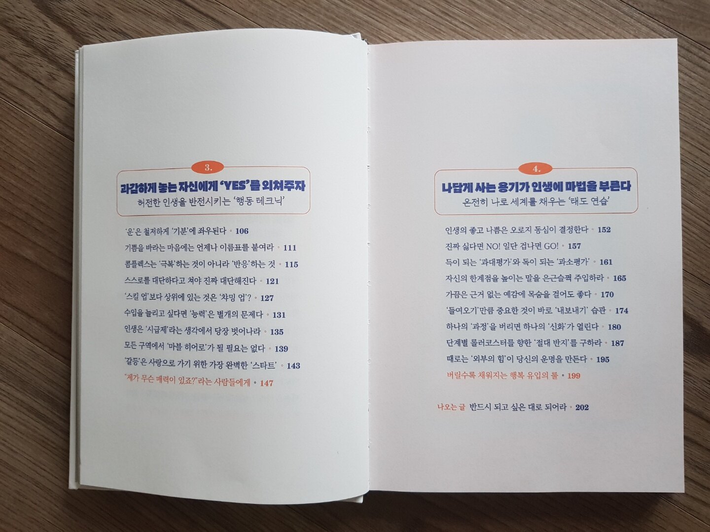 이렇게 4가지 주제로 구성되어있고 각 주제마다 9개의 하위 챕터로 모두 36가지의 성공법칙 이야기가 준비되어 있습니다.