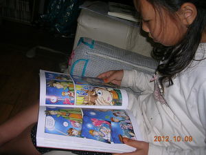 엄마가 만화책이라고 못보게 한다고 머리맡에 놓고 보다가 이불속에 숨겨 놓았다네요.