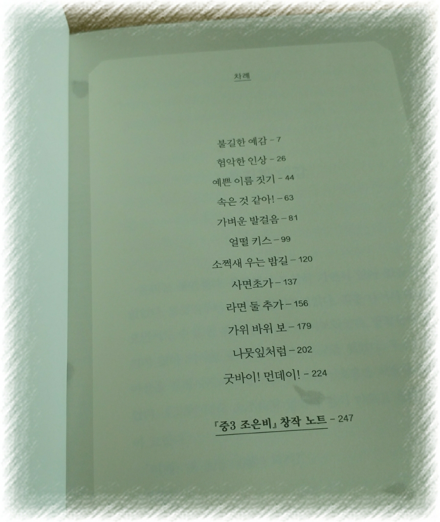 차례를 보니~~ 중3 은비에게 무슨일이 있어나는 지 흥미진진하게 호기심이 일었다.