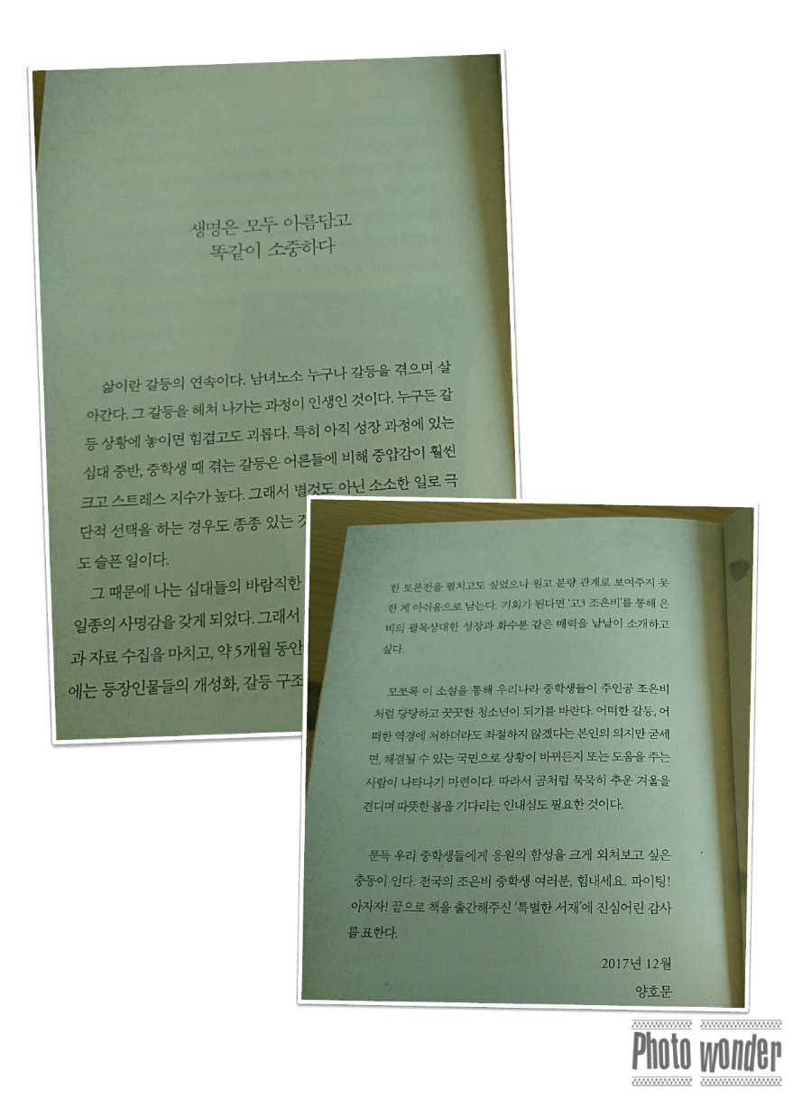 작가는 이소설을 통해 우리나라 중학생들이 주인공 조은비처럼 당당하고 꿋꿋한 청소년이 되기를 바란다.
