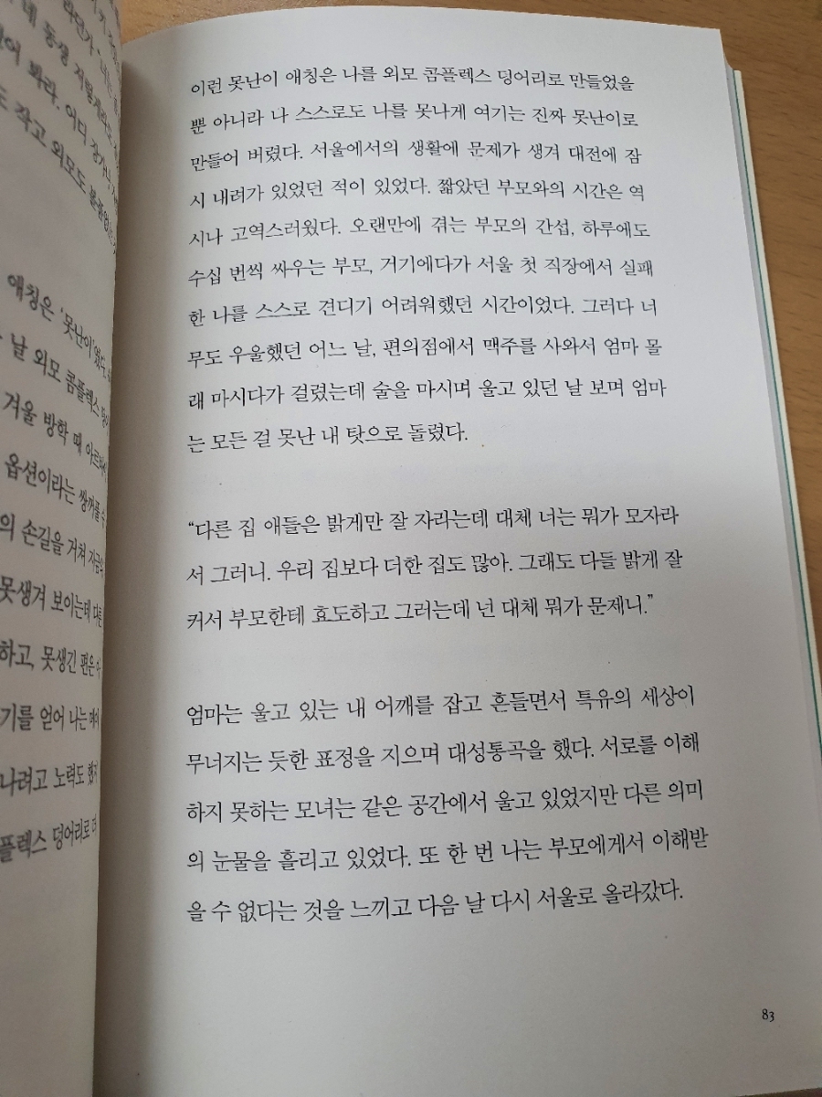알콜중독에 폭력적인 아버지....사랑이라는 이름으로 폭력을 쓰는 어머니..너하나 믿고 산다고 말하는 어머니가 전부인 작가...