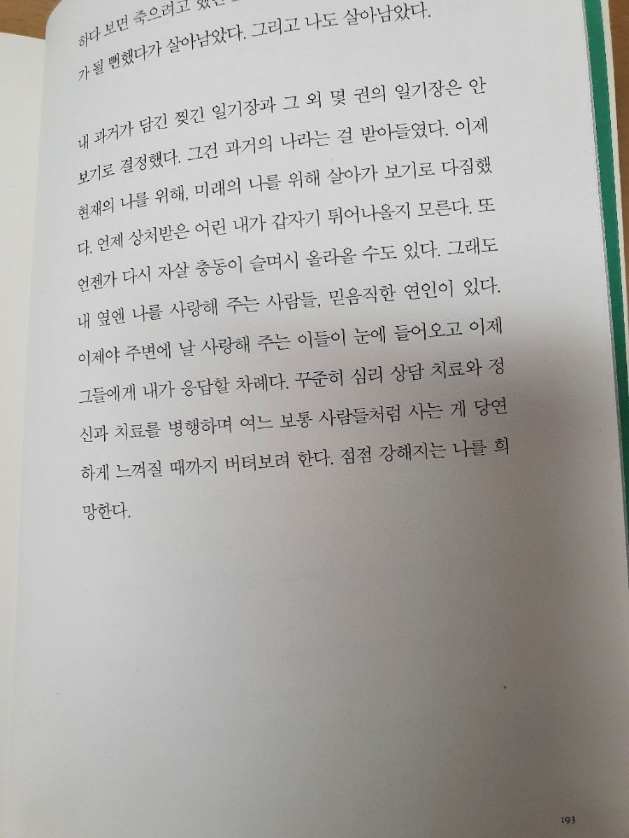 너무 힘들어하면서도 자신의 상처를 직면하고 다시 넘어지고 일어서고 넘어지고 일어서고를 반복하는듯 하다.