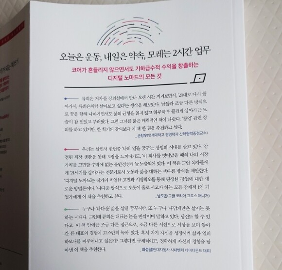 저자의 색다른 사고방식이 참 좋았던 책이다. 내가 미처 생각지도 못했던 사고 방식을 엿보는 것은 늘 기분이 좋다. 디지털 노마드를 추구하지 않더라도 그것만으로 읽어볼 가치가 있었다. 그것이 쉬운 길은 아니지만 불가능 한것만도 아니라는 것은 읽는 이에게 어떤 의욕을 솓구치게 해준다. 한참 젊은 저자이지만 참 배울 것이 많다. 역시 현명한 사람은 나이와는 별 관계가 없다는 것을 확인시켜 준다. 어린아이에게도 배울점을 배우는 사람이 되도록 해야겠다.