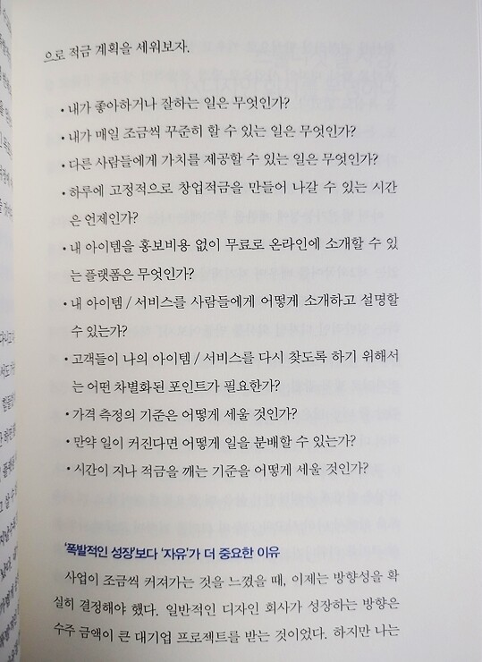 무리하게 시작하거나 회사를 관두고 올인하는 것은 큰 리스크를 부를 수 있기 때문에 처음엔 가볍게 시작하고 잘 풀리면 전업을 해도 좋을 것이다. 이것은 최근에 디지털 노마드나 N잡러로 불리는 사람들이 권유하는 방식이기도 하다.
