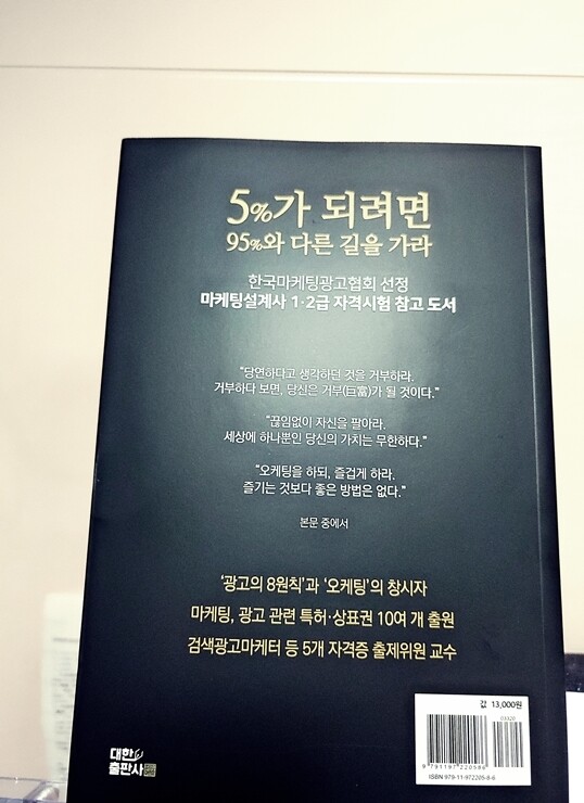 오케팅은 OK+Marketing를 합성한 말인데 책을 보기 전에는 저자 오두환의 오 인줄 알았다. O는 동그라미이기도 하기 때문에 끝없이 순환하고 도전한다는 의미도 지니고 있다. 뭐 그가 만든 합성어기 때문에 그 의미도 어느정도 있는 다의어일 것이다.