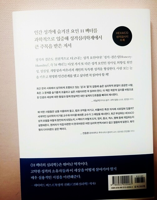 뒷편엔 부록으로 HEXACO검사를 할 수 있는 테스트 문항이 있다.