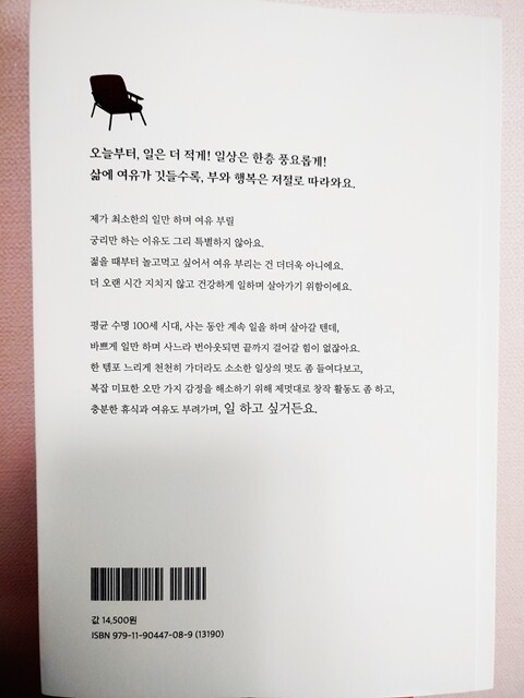 나 또한 휴식이 끝나면 다시 직장으로 돌아갈 것이다. 돌아갈 마음의 준비를, 지금은 돌아가고 싶지 않지만 서서히 하려고 한다. 다시 일을 하게 되면 같은 고통을 반복하지 않는 것이 가장 중요할 것이다. 그 점에 있어서 이 책이 많은 지침이 되었다.