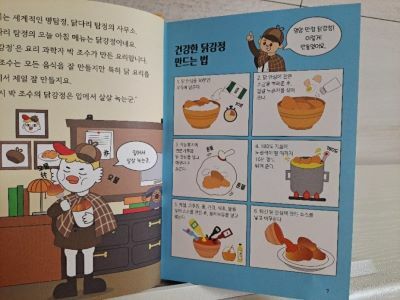 아이가 좋아하는 닭강정 만드는 법이 나와 있네요. 아이가 이것 좀 보라고 이거 보고 만들어 먹자고 난리였어요. 엄마는 곤란하지만 이런 장면들이 있어서 아이가 조금 긴 내용이지만 끝까지 읽어낸 것이 아닌가 합니다.