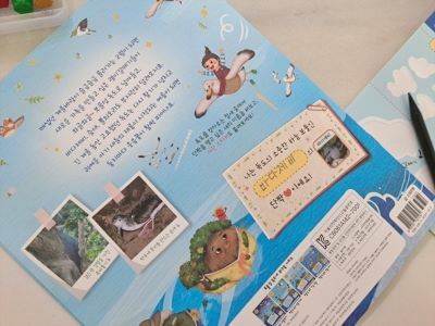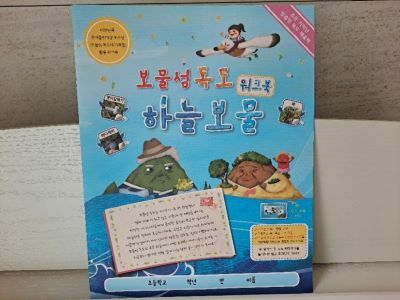 어린이 독도 창작 그림 동화인 '보물섬 독도네 시리즈'의 세 번째 이야기 <보물섬 독도네 하늘 보물>의 내용과 캐릭터를 이용한 워크북이에요.