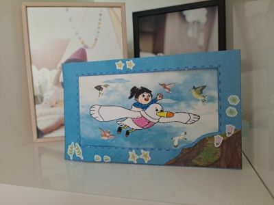 짜잔~ 완성작은 아이 액자 앞에 놔주었어요. 무엇이든 만들면 전시하는 걸 좋아하는 아이라서요. 날개 끝부분도 검정색으로 칠해줬으면 좋았을텐데 저도 아이도 깜빡했나봐요.