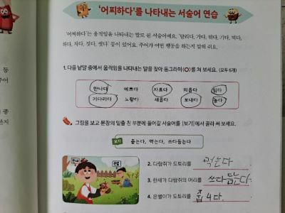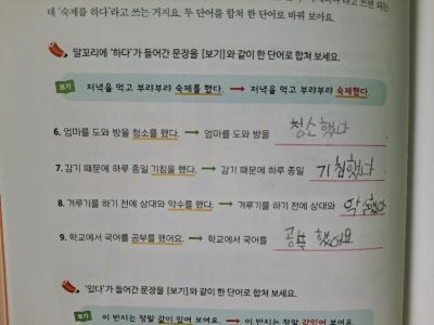 두 번 째 주성분 '서술어'입니다. 이제부터는 문장 만들기가 나오는데요. 아이가 어려워하지 않고 자신있게 쓰네요. <바른문장 만들기>를 다 끝내고 나면 어떤 글이라도 자신감있게 쓸 것 같아요.