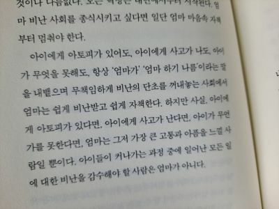 세상 여자들 다 애 낳고 잘만 키우는데 뭐가 그리 힘들다고 징징대냐는 말에 상처도 많이 받았는데 이 책은 징징대던 그 마음들을 다 공감해주고 따스하게 어루만져 줍니다.