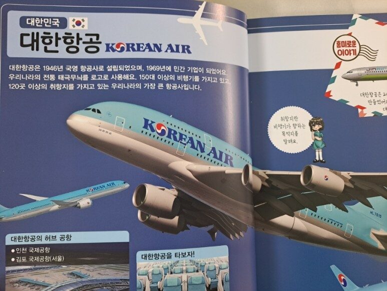단순히 비행기를 소개하는 것이 아니라 각 나라의 항공사를 비롯해 역사와 특징까지 함께 소개하고 있어서 읽을거리도 많아요. 아이가 엄마도 알아야 한다면서 옆에 와서 소리내서 읽는 바람에 얼떨결에 저도 같이 읽은 느낌입니다. 설거지 할 때도 옆에서 읽어대는 통에 심심하진 않았네요.