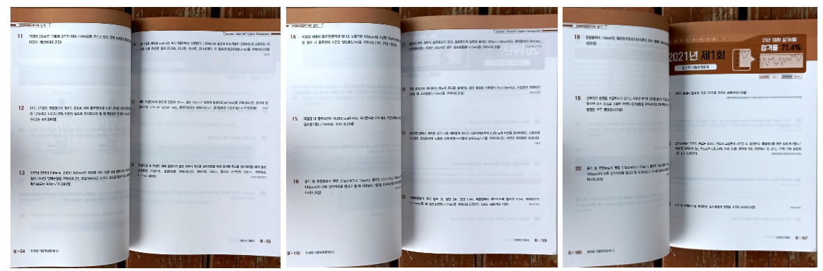 오직 문제만 집중하게 만들어진 거라 실기대비로는 이 책으로 집중하는데 적합하다는 생각이 절로 들게 해준다. 산업위생관리기사는 필답형만 응시하는 거라 다른 자격증 실기 준비하는 것보다 나은 점이 있다. 딱 한 달 잡고 본문에 제시된 문제들을 매일매일 자주 풀어본다면 충분히 합격할 수 있는 가능성이 높아진다. 특히나 이 자격증 시험이 마냥 어렵게만 제시된 게 아니라서 기출문제 그대로 나오기도 한다니까 이점을 위안을 삼고 자주 회독해주면 고득점을 맞을 수 있는 확률이 높아질 것이다.
