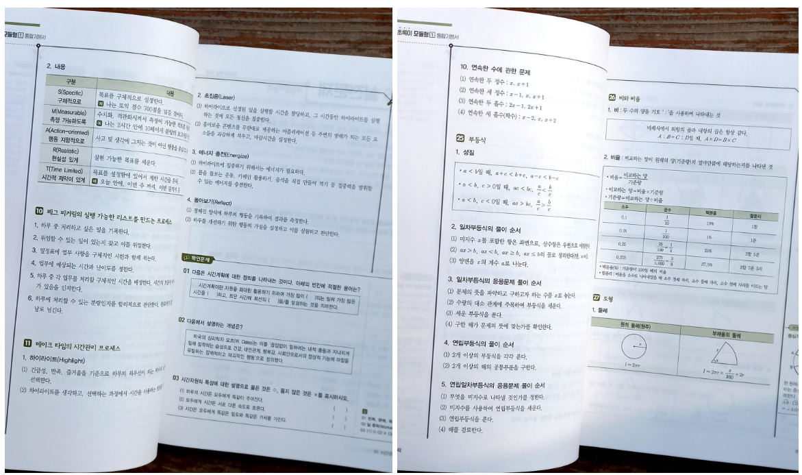 요즘은 공기업NCS 공채 필기시험에서는 신유형으로 생전 보지도 못한 문제들도 마주할 수 있게 되어 이번 문제들이 하나하나 새롭다라는 말이 나오게 된다. 본문에 담아진 문제가 생각지도 못한 문제들이 담아져서 이전교재보다 훨씬 눈에 가는 문제들을 볼 수 있다는 점이 주요 포인트였다.