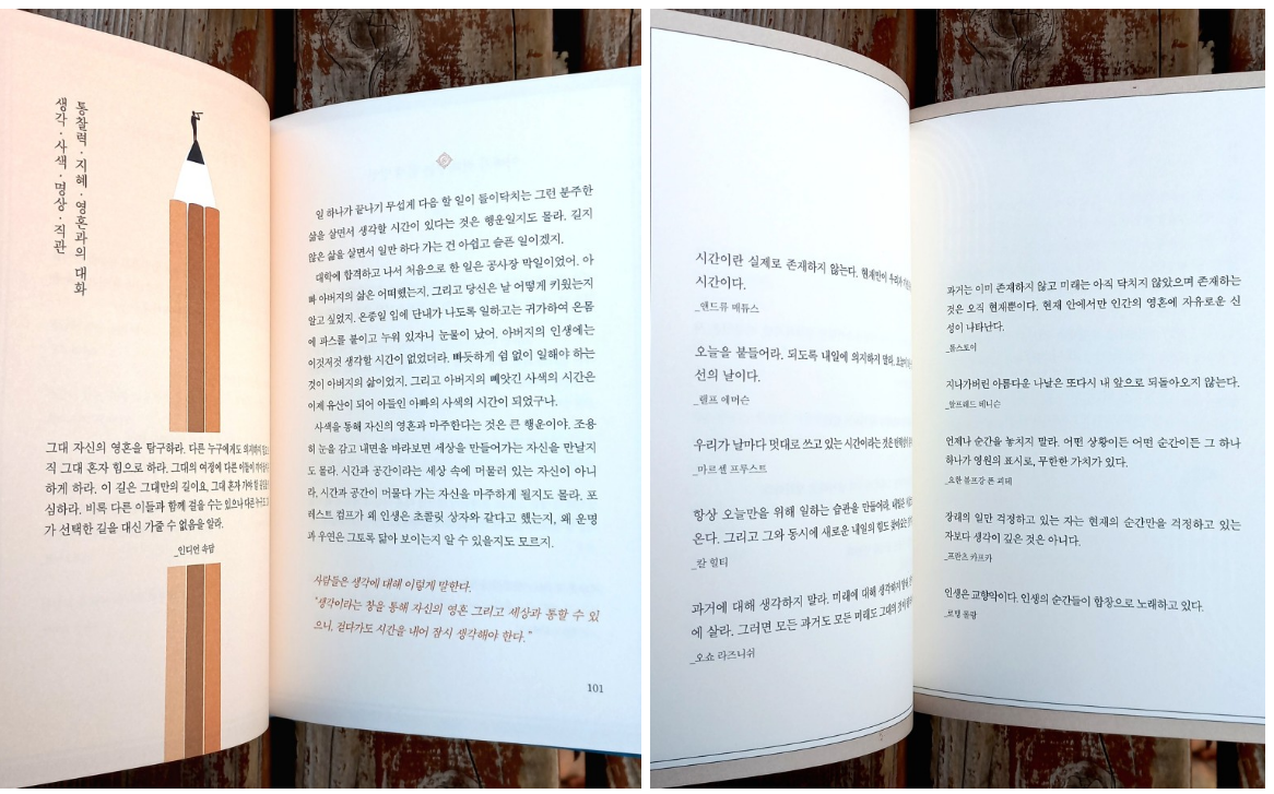 삶이란, 늘 우리에게 달달한 것을 주지 않는다. 음식의 맛이 짜고, 맵고, 달고, 쓰고, 신맛이 나는 것처럼 다양한 인생의 맛을 느끼라고 하루하루 다양한 상황을 마주하게 된다. 그래서 각팍한 현실에서 살아남으려면 정신이 번쩍나는 사실적인 조언을 보는 것이 필요하다.