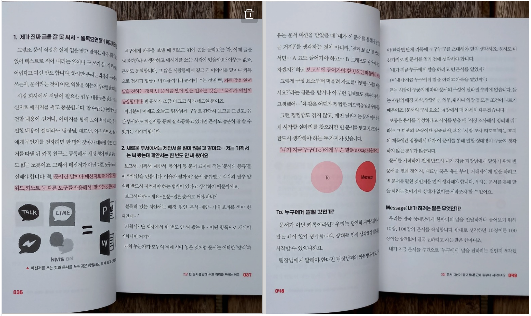 보고서관련 도서를 보면 하나같이 예시가 마케팅이나 기획, 인사, 경영 등 이런 분야만 쓰이는 거 같다고 생각이 들겠지만, 어느 직무든 간에 보고서에서 전해야 할 필수 양식은 하나의 법이자, 규칙이므로 문서의 종류을 알고 문서마다 제시해야 할 필수 용어와 양식 패턴을 기억하는데 필요한 조언을 쪽집게처럼 잘 일러준다.