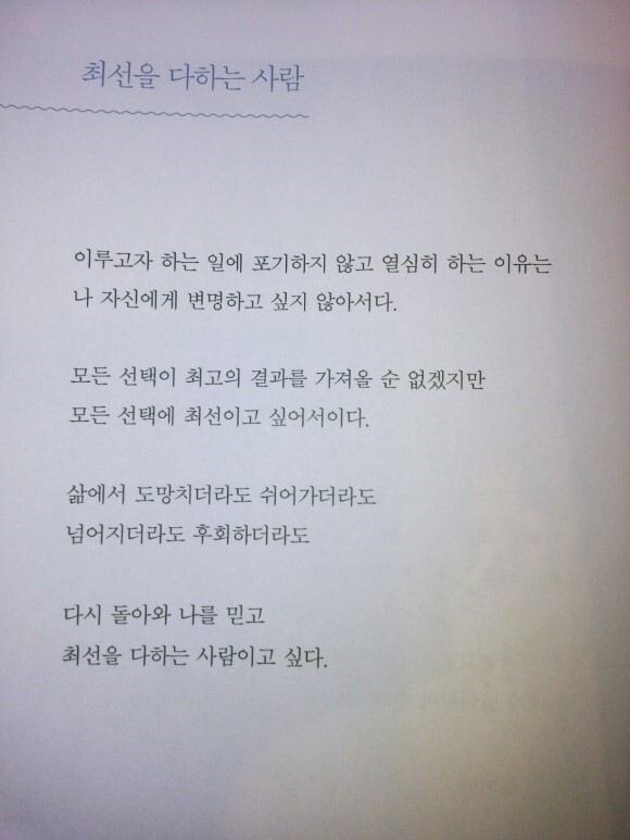 이 책을 몇번 이고 또 읽으면서 사랑하는 법을 달리 해야겠다는 생각을 하게 된다.