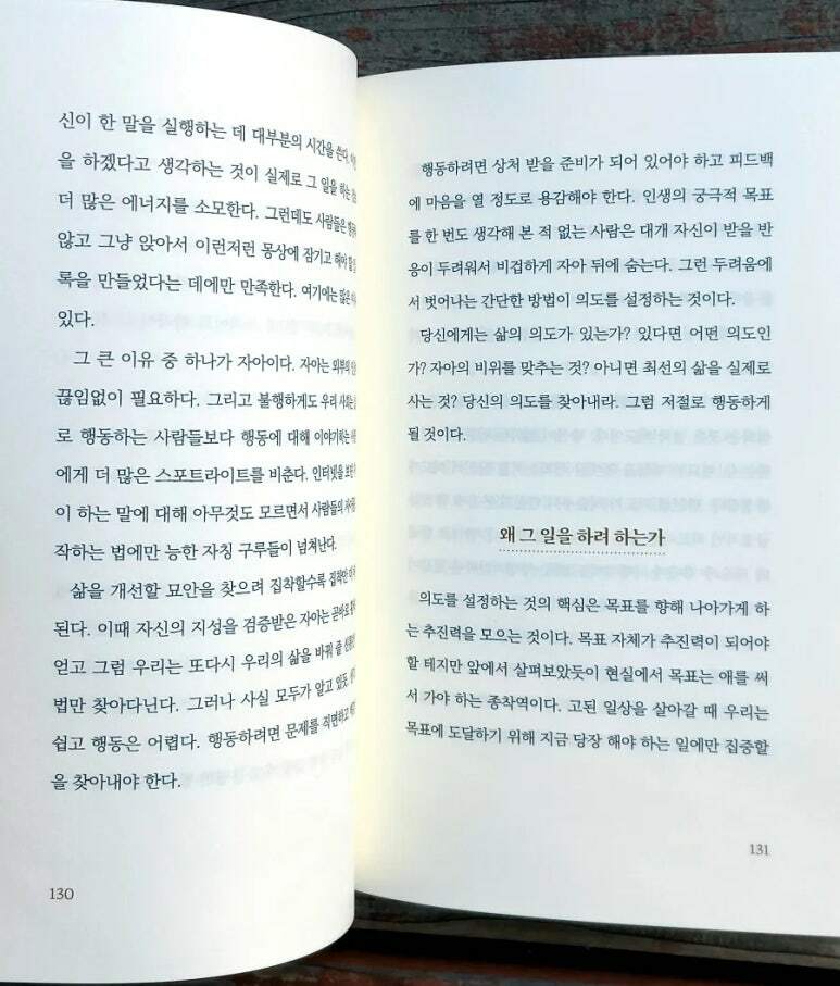 이 책을 읽다보면 어디서 많이 들어본 조언이 여기서도 보여지게 되지만 그걸 알아도 행동으로 실천하지 않았다면 다시 한번 주의깊게 고뇌해봐야 할 듯 하다.