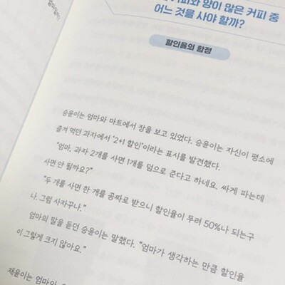 이 책을 읽으며 내가 아래 사진처럼 할인율의 함정, 복리의 개념 같은 일상 속에서 흔히 하는 생각 외에도 0.999…가 1이 되는 이유 등 수학적 사고가 필요하고 알면 있어 보이는() 개념도 다수 등장해 다양한 화제의 수학을 맛볼 수 있었다.