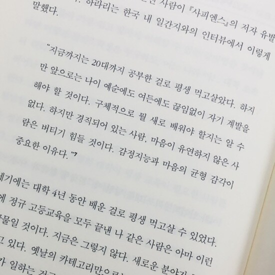 "지금까지는 20대까지 공부한 걸로 평생 먹고살았다. 하지만 앞으로는 나이 예순에도 여든에도 끊임없이 자기 계발을 해야 할 것이다. - P42