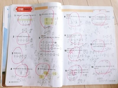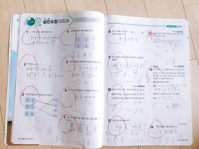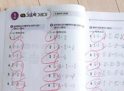 문제집을 풀면서 아이 스스로 1단원 <분수의 나눗셈>을 공부하고 수학공부에 재미를 붙인 것 같아서 참 대견하고 무엇보다 문제 수준도 너무 어렵거나 힘들지 않아 방학동안 예습할 교재로 안성맞춤이라는 생각이 듭니다~