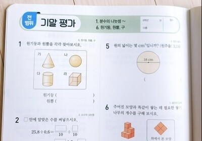 평가책은 개인적으로 제일 마음에 드는 교재인데요, 보통 다른 교재들은 진도교재와 복습 교재의 구성이 대부분인데 <개념 + 유형 라이트> 는 평가책까지 있어 단원별 평가문제와 중간, 기말문제를 통해 총체적으로 복습하고 마무리하는 교재로 손색이 없다는 생각이 듭니다~ 마치 보너스 받은 기분이랄까요~^^