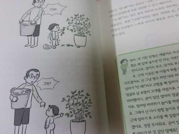 아이의 행동에 긍정적인 결과를 낼 수 있는 방법을 이야기하고 있고