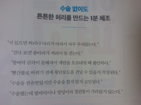 동시에 이 책을 참고하여 운동 습관을 만들어 척추관 협착증을 예방하거나 개선해야한다
