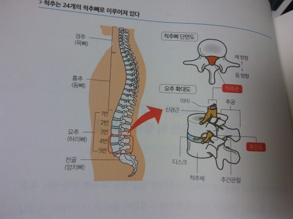 척추는 24개의 작은 척추뼈로 이뤄져 있다