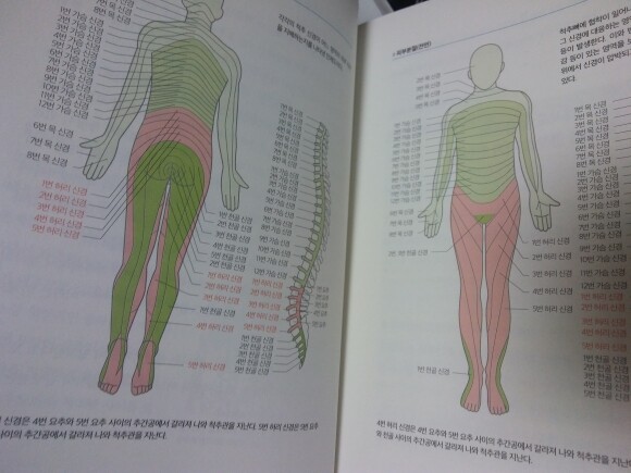 각각의 척추 신경이 어느 영역의 피부 지각을 지배하는지를 나타낸 인체도를 보면서