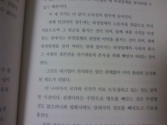 선진국이 개발도상국가에 합병회사를 만들어 현저히 노동자들로 하여금 제품을 만들게하는 것도 분명히 헐값으로 노동력을 훔치는 해위이기에 모두가 평등하게 훔치고 있다
