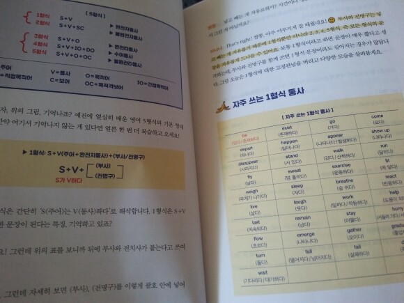 자주쓰는 1형식 동사를 익히고 부사와 전명구는 넣고 빼는 게 자유롭기 때문에 1형식뿐만 아니라 2,3,4,5형식, 즉 모든 형식의 문장을 자유롭게 드나들 수 있다고 한다