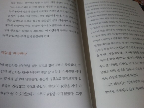 그 작은 씨앗 하나가 엄청난 힘을 일으켰고 부모가 주는 자극으로 아이는 경험의 범위가 넓어지기 때문에 평범함을 묻어나질 않는다