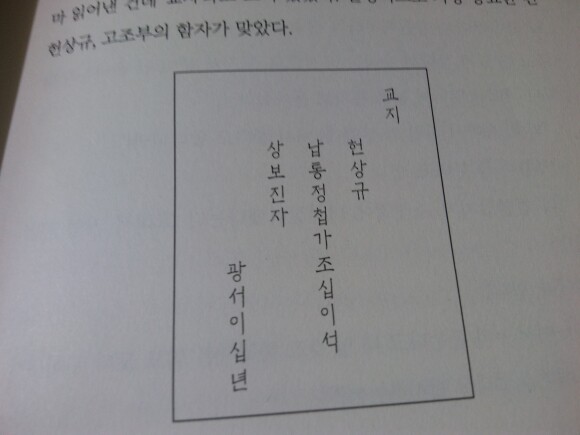 "교지"라고 쓰여 있고 결정적으로 가장 중요한 건 헌상규,고조부의 함자가 맞았다