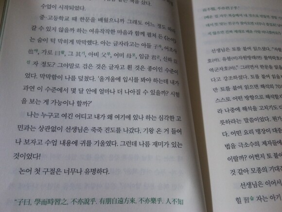 <논어> 사실 생각만 해도 음 한자로 한가득한지라 읽기가 부담스럽다. 그런데 논어의 첫 구절은 너무나 유명한 "자왈, 학이시습지(면) 불역열호(아),유붕(이)자원방래(면) 불역락호(아), 인부지이불온(이면) 불역군자호(아)" 해석을 알게 되면 괜히 한문을 더 알고 싶어지는 마음이 든다