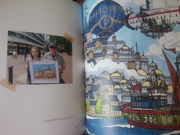 인스타그램을 통해 가장 먼저 친구가 된 브라이언을 만나 런던 템스강 주변을 함께 걸은 뒤 강가 벤치에 앉아서 같이 그림을 그렸다고 한다. 브라이언은 강 건너편에 있는 극장을 그려 그림 속 뒤의 배경은 상상 속의 도시를 보게 된다