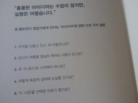 얇은 책같으나 깊이가 있고 쌤 올트먼이 창업가에게 던지는 "아이디어"에 관한 다섯가지 질문을 통해 막막했다면 이제 도움을 받아 성공의 자리로 옮겨보자