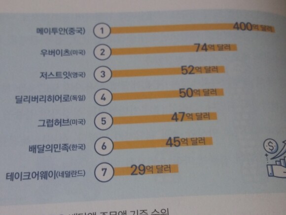 요기요와 배달의 민족에 밀려 한국에서 철수한 우버이츠는 2014년 8월 캘리포니아주 산타모니카에서 음식배달을 시도했다 테이크어웨어는 유럽에서 가장 큰 배달앱으로 재탄생되고 있다는 것을 볼 수 있다.