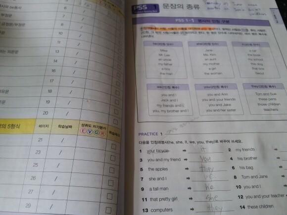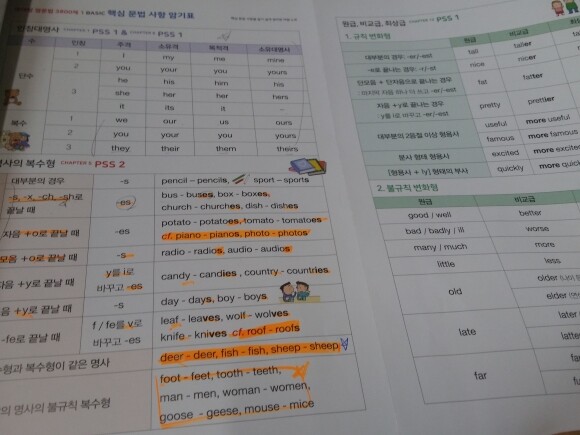 원급,비교급,최상급,,,오,,,보기만 해도 어려움이 느끼진다 하지만 이부분은 공부할때 다시 열영하기로 하고 일단 핵심문법사항암기표와 명사의 복수형을 정확히 익히고 PSS 1 문장의 종류에 넘어가 학습하기로 한다.