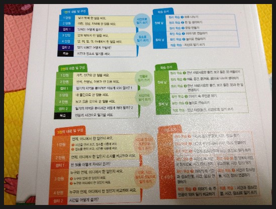 시간, 장소, 인물, 사건등을 조합하여 일기쓰기로 구성되어 있어요.