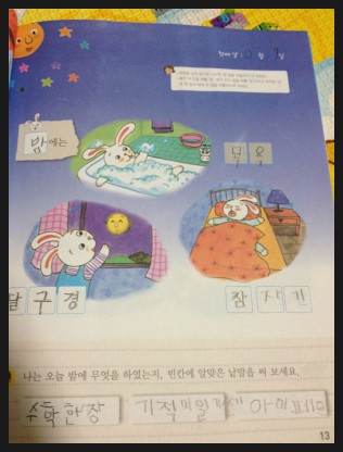 밤에 한 일에 기적의 일기 쓰기와 아이패드도 있어요. ㅎㅎ