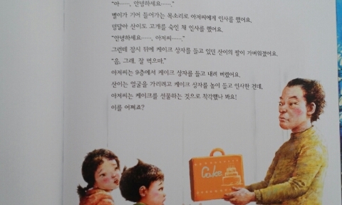 하얀머리 할아버지는 카스테라와 우유를 사가지고 가는데 한쪽 다리를 절며 몹시 불편해 보였어요..